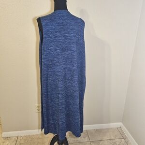 Stylish blue sleeveless open cardigan. Perfect for layering.