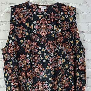 LuLaRoe Joy Vest Black Silky Soft Sleeveless Tribal Print Long Cardigan Duster