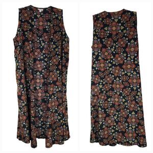 LuLaRoe Joy Vest Black Silky Soft Sleeveless Tribal Print Long Cardigan Duster