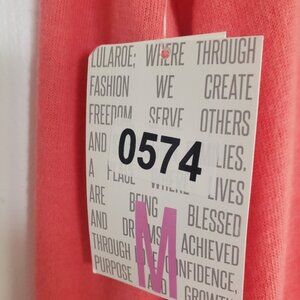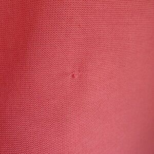 Long vest with side slits. Coral colored. There are a couple very small spots and snags on the back. Snag is visible on inside but not on the outside. Please see photos. The material and care tag is missing.