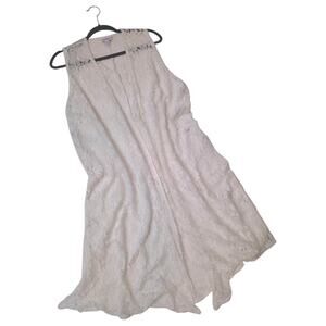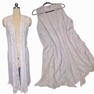 LuLaRoe Joy Vest Large Lace Off-White Stretch Longline Layering Duster Boho