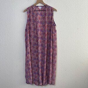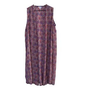 LuLaRoe Joy Vest Medium Longline Sleeveless Orange Purple Beige Lightweight Laye