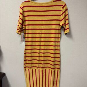 LuLaRoe Julia Dress Mustard Red Stripe NWT size M