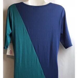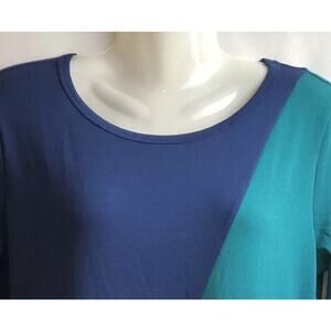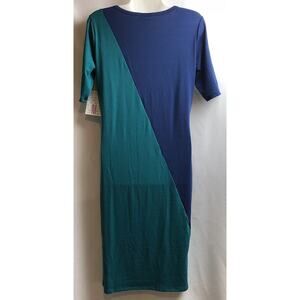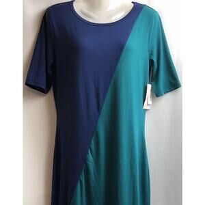 LuLaRoe Julia Dress Women Size M Blue Green Colorblock Midi Stretch Fit Comfort