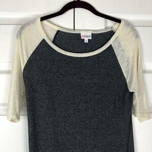 LuLaRoe Julia Dress - Grey with cream sleeves