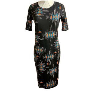 LuLaRoe Julia Pencil Dress Womens SZ S Tribal Aztec Print Stretch Bodycon Midi