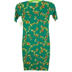 LuLaRoe Julia Sheath Pencil Dress Green Orange Yellow Floral Stretch XS