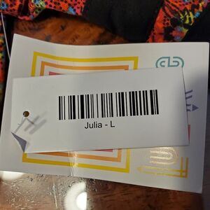 Brand new with tags LuLaRoe JULIA Simply Comfortable Colorful Dress in Size L. Dress does have stretch.
