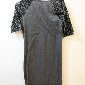 LuLaRoe Julia T Shirt Dress Gray Heathered Stars Scoop Neck Stretch Womens Small