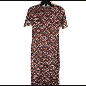LuLaRoe XXS Julia Dress Americana Stars Fitted Sheath. Polyester Spandex Blend. Machine wash cold, hang dry or York you'll be sad. Simply comfortable.