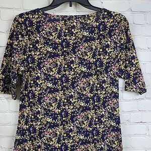 LuLaRoe Julia M 8/10 Blue Floral Knee Length Knit Bodycon Soft Stretch Dress