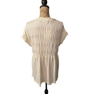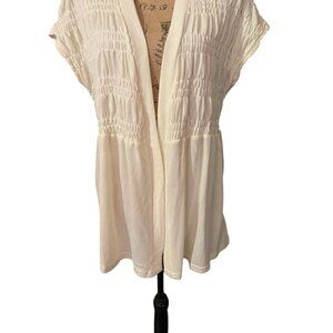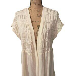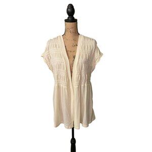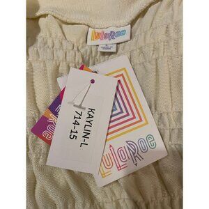 LuLaRoe Kaylin Cardigan in a size large. New. Solid cream color. Laying flat pit to pit 19in. Length 28.5in. There is a small snag on bottom front of sweater look at picture.