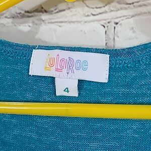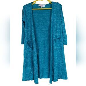 LuLaRoe Kids Sariah Cardigan Turquoise Heather Full Length Pockets Knit Sweater