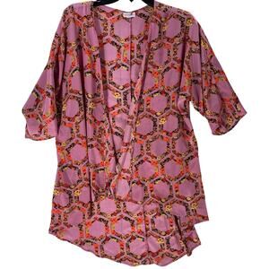 LuLaRoe Kimono Womens Size S Pink Floral Lightweight Open Front Duster Festival