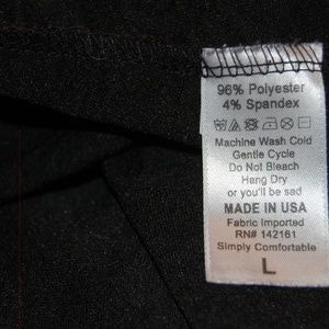 96% polyester, 4% spandex. Machine wash cold, line dry. Some pilling. Cat friendly home.