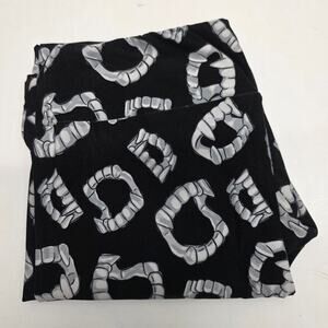 LuLaRoe LLR Tall & Curvy TC Halloween Leggings Black White Plastic Vampire Teeth