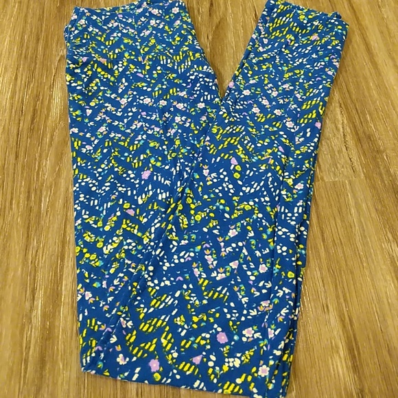 Brand new, never worn LuLaRoe leggings! Blue Chevron pattern on a floral background.