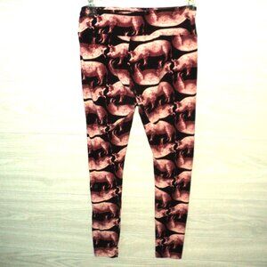 LuLaRoe Leggings Pigs One Size (2-10) Pink and Black Stretchy Polyester, Spandex