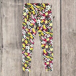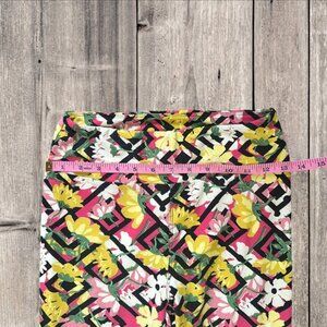 LuLaRoe Leggings Women OS Black White Pink Yellow Floral Poppies Trellis Lattice