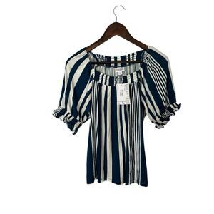 LuLaRoe Lily Square Neck Blouse Striped Peasant Top L Vertical Stripes NWT