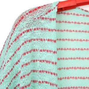LuLaRoe Lindsay Kimono Cardigan Sweater Shirt Mint Green Red Striped M Medium