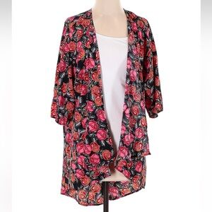 LuLaRoe Lindsay Open Front Floral Kimono Cardigan High Low Black Roses Size S