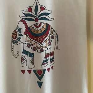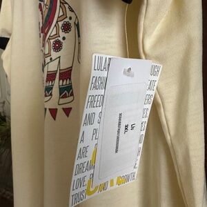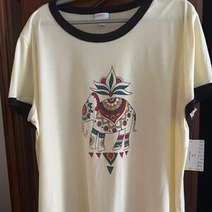 LuLaRoe Liv Short Sleeve Cream Boho Tribal T-Shirt Lucky Elephant 3X NWT