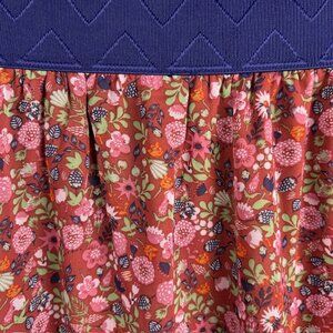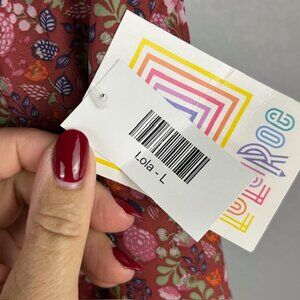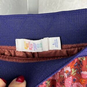 This LuLaRoe Lola A-line Skirt in size Large (14/16) features a floral pattern in brown, green, and purple colors. This midi-length skirt has an elastic waist for comfort and convenience. Suitable for various occasions such as travel, weddings, parties, casual outings, and business events, this skirt is made from polyester material and is machine washable. The A-line style and layered accents add a touch of charm to this versatile and stylish piece by LuLaRoe. Perfect for the summer, fall, and spring seasons.
