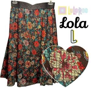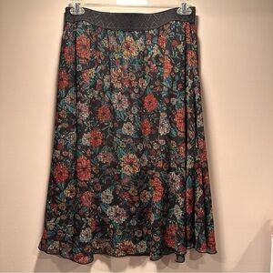 LuLaRoe Lola Lined Chiffon Midi Skirt Colorful Floral Elastic Band Large 14-16