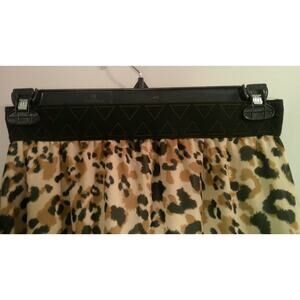 The LuLaRoe Lola Women's Medium Sheer Leopard Skirt is a stylish and versatile addition to any woman's wardrobe. Made from polyester material and featuring a black and brown animal print pattern, this knee-length skirt has an elastic waist for comfort and ease of wear. The A-line silhouette and pull-on closure make it convenient for everyday wear, while the leopard theme adds a trendy touch. Perfect for any occasion, this skirt by LuLaRoe is a fashionable choice for women looking to make a statement with their clothing.