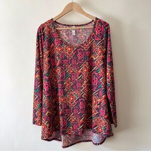 LuLaRoe Lynnae Long Sleeve Top w/ Colorful Geometric Print Size 2XL