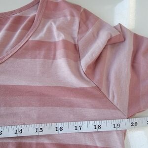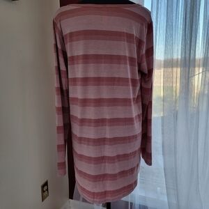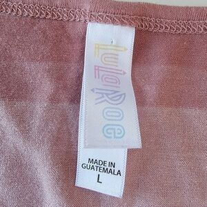 LuLaRoe Lynnae striped long sleeve high low hem shirt. Measures flat 29.5" underarm seam to seam, 24.5" sleeve length, 26" front hem and 28.5 back hem. Stretch poly/rayon/spandex. Size Large EUC