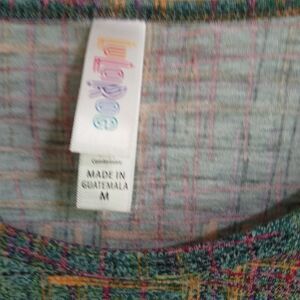 LuLaRoe M Green Purple Orange Geometric High Low Simply Comfortable Tunic Top