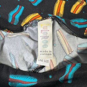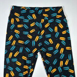LuLaRoe Macaroon Black Blue Hot Dogs Sandwich Cookies Yellow Leggings One Size
