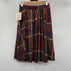 LuLaRoe Madison Black Multicolor Geometric Print Pleated A-Line Mini Skirt