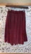 Velvety box pleats in a festive wine red. Mid-length with elastic waist and hidden pockets. Size XS.