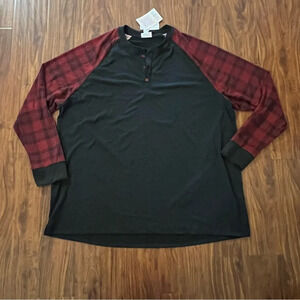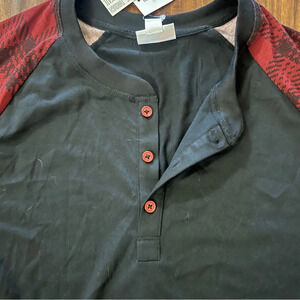 LuLaRoe Mark 3 Button Henley T-Shirt Long Sleeve Red Black size 3X Unisex