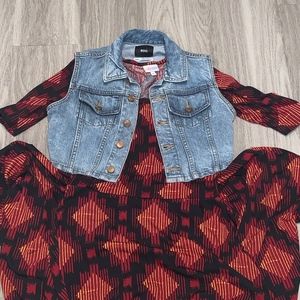 This is a super comfy dress. I love the way it looks with the denim vest, which is also for sale, but if you don't like the vest you can style it without it or add a cute jacket. this is one of those items that you can look super cute with very little effort. This is in like new condition and comes from a pet and smoke free home.