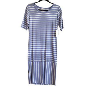 The Julia dress is a form fitting, knee- length, knit dress with mid-length sleeves.