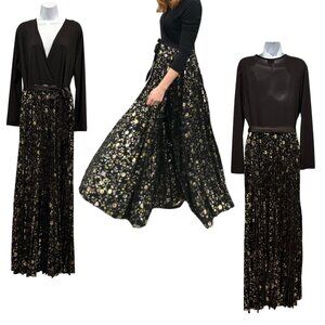 Description: LuLaRoe Metallic Floral Wrap Maxi Dress Accordion Pleats Evening Formal Size XL