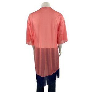 LuLaRoe Monroe Fringe Kimono Small Peach Sheer Open Front Short Sleeve