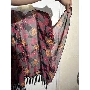 LuLaRoe Monroe Sheer Kimono Cardigan Top Open Front Floral Fringe Size L