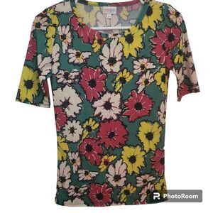 LuLaRoe Multi-colored Flowers Green Background Gigi T-Shirt - XS 0-2 NWT