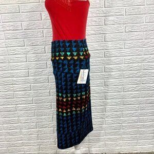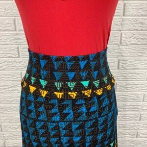 Multicolored geometric patterned “Cassie” midi skirt by LuLaRoe. Size 3XL. Black, blue, green, yellow, red, brown. New with Tags.