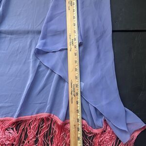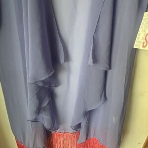 Brand new with tags LuLaRoe Monroe kimono in size Small. This versatile piece features a beautiful sheer periwinkle/lavender fabric with a fun coral/pink fringe trim. It can be worn as a lightweight cardigan, duster, or beach cover-up. Perfect for layering over jeans and a tank top or a dress. The flowy, open-front design and stylish fringe detail are on-trend for a bohemian look. This item is new, unworn, and from a smoke-free home.