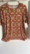 Eye-catching LuLaRoe top with a bold geometric design. Short sleeves for a casual look. Stretchy. The sleeve is kind of small please see measurements for reference while the blouse is stretchy and would fit a size L. The sleeves are not as stretchy as the body.