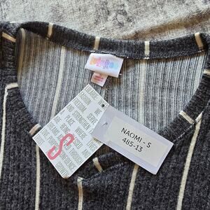 LuLaRoe Naomi Sweater Womens Small Gray White Stripe Batwing Pullover Top NEW