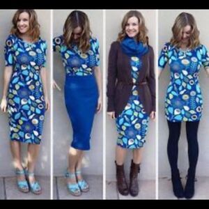 LuLaRoe Navy & Royal Blue polka dot bodycon dress, size XXS or size 00-0. Flattering dress. It looks super cute as a maternity dress! You can also layer it to make it look different. See photos for ideas. Care & content tags in photos.