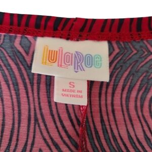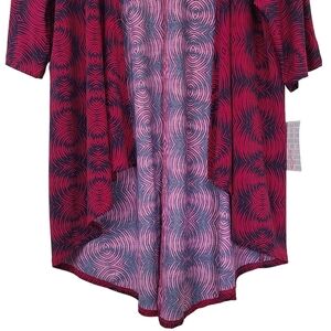 Super cute Lularoe Lindsay Kimono style Cardigan. Size Small. Red Black Dark Blue Pattern.