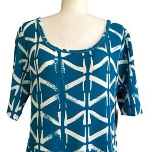 LuLaRoe Nicole Blue White Pattern Scoop Neck Half Sleeve Drop Wasit Casual Stretch Midi Dress